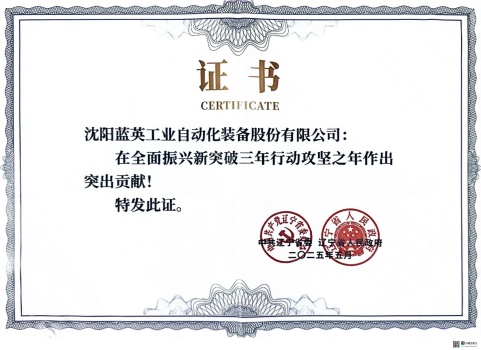 5月13日,遼寧省委省政府對(duì)在全面振興新突破三年行動(dòng)攻堅(jiān)之年作出突出貢獻(xiàn)的241戶企業(yè)予以通報(bào)表揚(yáng)。其中,全省共有111家民營企業(yè)獲得表彰,沈陽藍(lán)英工業(yè)自動(dòng)化裝備股份有限公司位列其中。