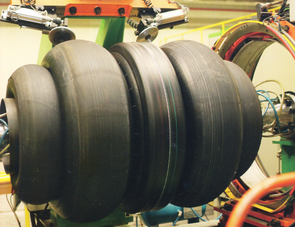 本裝置由左右反包、助推膠囊組合充氣完成反包定型,胎側(cè)反包拉伸均勻一致,胎側(cè)高度一致性好,胎側(cè)反包氣泡少,胎胚外形均勻?qū)ΨQ(chēng)。 成品輪胎胎側(cè)無(wú)側(cè)鼓,有效保證輪胎動(dòng)平衡指標(biāo)值的提升。